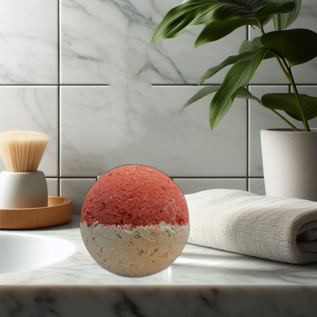 Ingrédients: Bicarbonate de soude, Acide citrique, Sel Epsom, fécule de mais, eau , alcool ,fragrance de fraise et kiwi , mica, coco bétaïne , Polysorbate 80,Poids environ 100 gr.